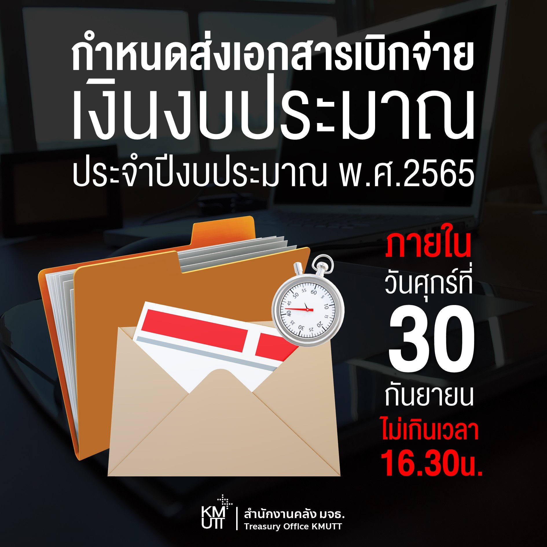 กำหนดส่งเอกสารเบิกจ่ายเงินงบประมาณ ประจำปีงบประมาณ พ.ศ.2565