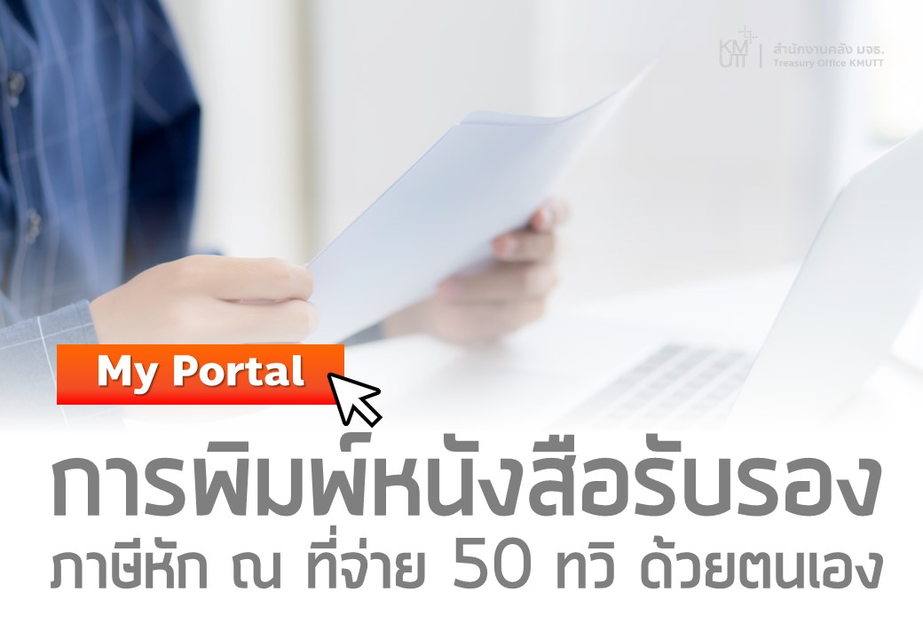 ด้วยสำนักงานคลัง ได้ดำเนินการจัดทำหนังสือรับรองการหักภาษีหัก ณ ที่จ่าย 50 ทวิ ประจำปีภาษี 2565 ในระบบ My Portal เสร็จเรียบร้อยแล้ว จึงขอแจ้งแนวทางการดำเนินการเกี่ยวกับการจัดพิมพ์หนังสือรับรองภาษีฯ ด้วยตนเองดังนี้