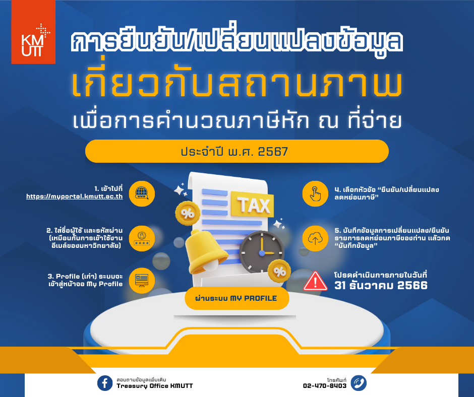 การยืนยัน/เปลี่ยนแปลงข้อมูลเกี่ยวกับสถานภาพเพื่อการคำนวณภาษีหัก ณ ที่จ่าย ประจำปี พ.ศ. 2567