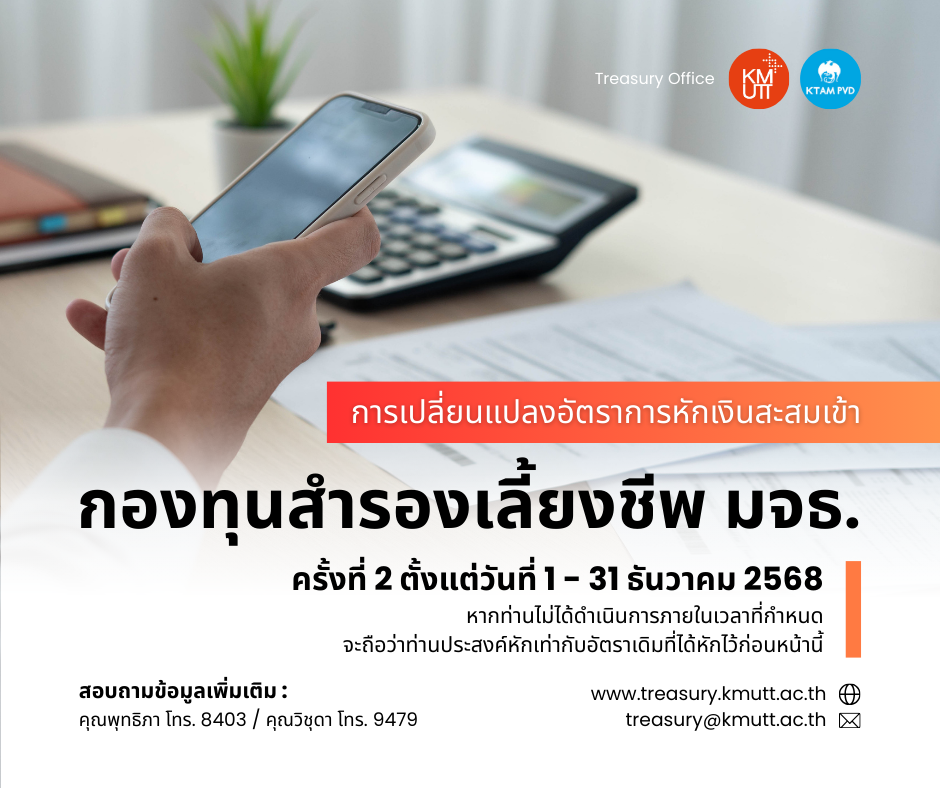 ดังนั้น เพื่อให้เป็นไปตามข้อบังคับฯ การยืนยันอัตราการหักเงินสะสมจากเงินค่าจ้างของท่านเข้ากองทุนฯ ท่านสามารถเข้าไปเปลี่ยนอัตราการหักเงินสะสมทาง Online ผ่าน www.ktam.co.th ครั้งที่ 2 ตั้งแต่วันที่ 1- 31 ธันวาคม 2568 หากท่านไม่ได้ดำเนินการภายในเวลาที่กำหนด จะถือว่าท่านประสงค์หักเท่ากับอัตราเดิมที่ได้หักไว้ก่อนหน้านี้แล้ว ทั้งนี้ ท่านสามารถศึกษาคู่มือการเข้าใช้งานการเปลี่ยนแปลงอัตราเงินสะสม (ตามเอกสารแนบท้าย)