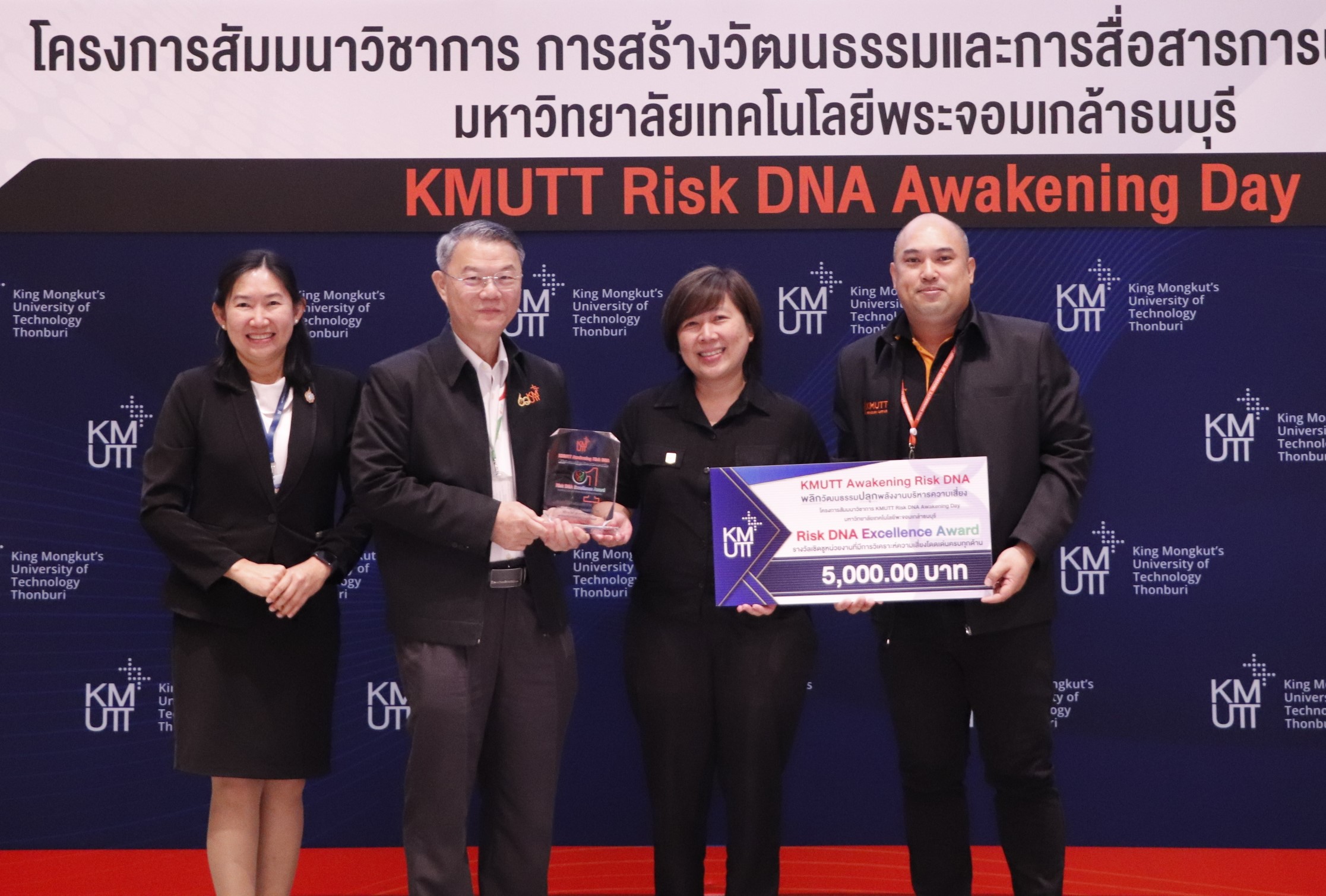 ในส่วนของกิจกรรมการนำเสนอ (Pitching) ทีมบริหารความเสี่ยงจาก สำนักงานคลัง ได้รับรางวัล Risk DNA Excellence Award (รางวัลชนะเลิศ) ในงาน KMUTT Risk DNA Awakening Day ซึ่งเป็นเวทีสำคัญในการปลุกพลังวัฒนธรรมการบริหารความเสี่ยงในระดับองค์กร สำนักงานคลังขอแสดงความยินดีกับทุกหน่วยงานที่ได้รับรางวัลและผู้เข้าร่วมกิจกรรมทุกท่าน ที่ได้มาร่วมกันขับเคลื่อนและเสริมสร้างวัฒนธรรมการบริหารความเสี่ยงให้เข้มแข็ง อันจะนำไปสู่การพัฒนาองค์กรอย่างยั่งยืนต่อไป